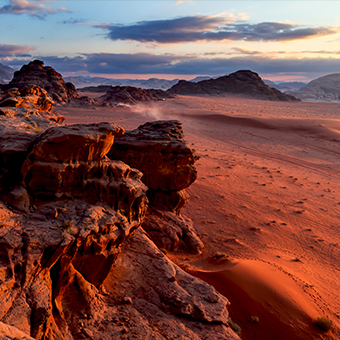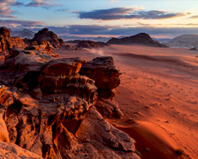 Pour relier les deux sites légendaires de Pétra et de Wadi Rum, un trek d'une semaine est proposé à travers l'une des plus longues étendues de nature sauvage du Jordan Trail. Ici, dans le désert vide mais également saisissant, avec ses formations rocheuses spectaculaires, l'observation des étoiles et la sérénité qu’on y ressent sont à leur apogée. Commençant par des wadis profonds et accidentés et se poursuivant par des plaines ouvertes et sablonneuses, cette section de la piste vous emmène dans des endroits où les hommes vont rarement. L'arrivée au village de Wadi Rum offre un avant-goût de la vie bédouine après le caractère isolé de cette section.